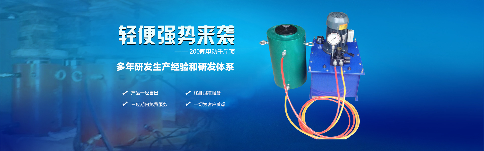 德州格恩液压机械有限公司是国内生产超高压机具的骨干企业。产品品种主要涵盖液压千斤顶、电动千斤顶、电动液压千斤顶、分离式千斤顶、同步千斤顶、大吨位千斤顶、顶管千斤顶、大吨位液压千斤顶、分离式千斤顶、液压电动泵、电动泵、手动泵、机动泵及泵站、工具缸等各种超高压元件、附件和机具,也可根据客户需要研发各种液压系统液压机具。 有多年研发生产经验和研发体系,公司产品覆盖面广,产品质量过硬。 产品一经售出,终身跟踪服务,三包期内免费服务,一切为客户着想。 公司作为高品质的液压电动泵,手动泵,电动泵,液压千斤顶液压产品的生产企业,不断创新开发产品。格恩“以人为本、科技创新、以顾客满意为宗旨”的经营理念。具有高素质的专业技术人才和精良的制造设备以及高明的检测手段和高精度检测设备,足以保证高品质的产品质量和完善的售后服务......更多